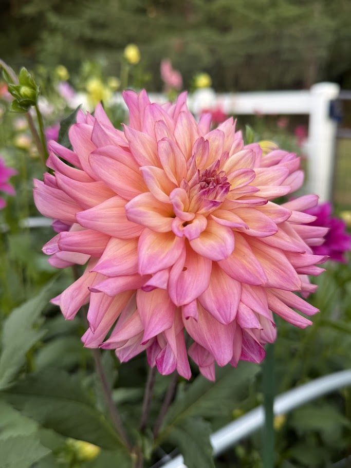 This particular Dahlia holds a special significance for me, as my husband and I got married in the Bahamas. Its Soft Banana petals and mauve pink hues evoke memories of the stunning and captivating colors of the islands. This Dahlia reaches a height of about 4 feet and boasts blooms that measure 5-6 inches.
