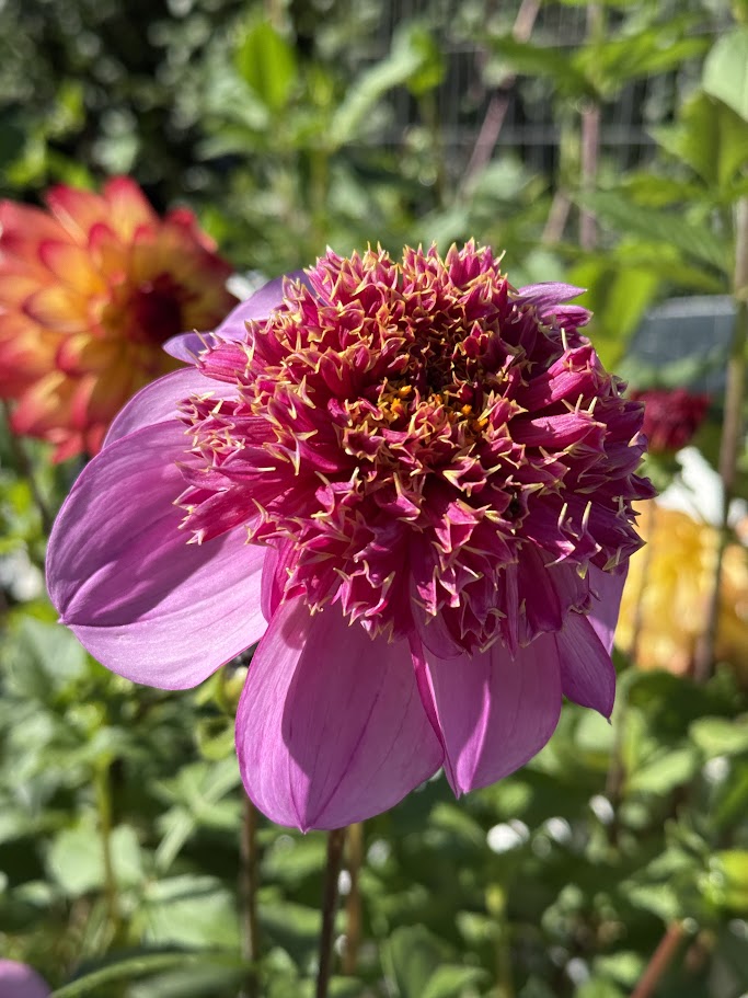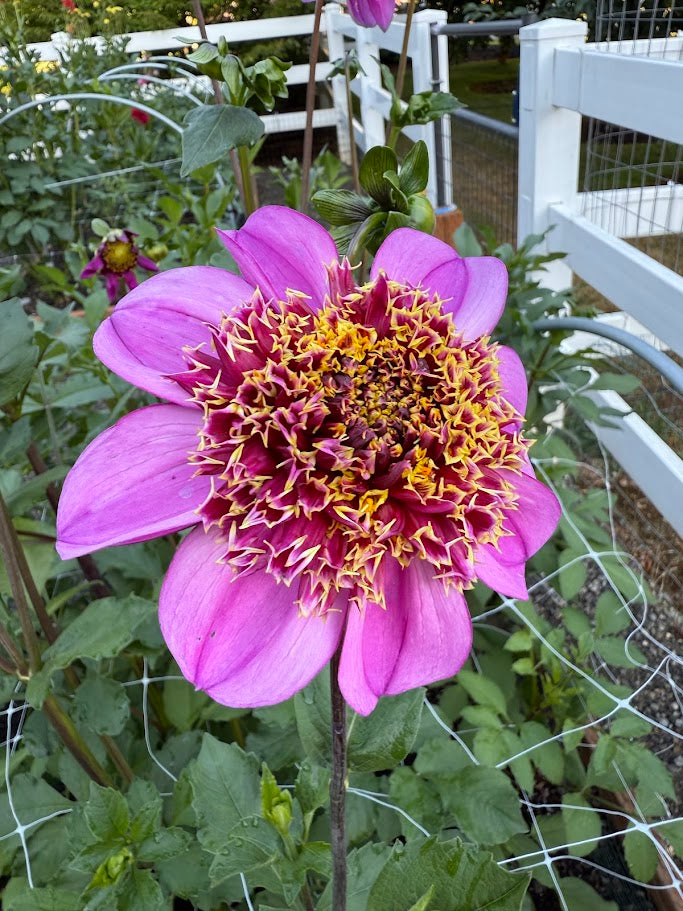 Bring a splash of whimsy to your garden with Dad's Favorite! These 5-inch lavender blooms flaunt a single row of petals crowned by a fluffy purple center kissed with gold. Standing 4 feet tall, this plant’s dark stems create a striking contrast that makes every bloom pop. Perfect for adding a playful, unexpected twist to your flower beds or bouquets.