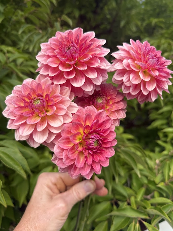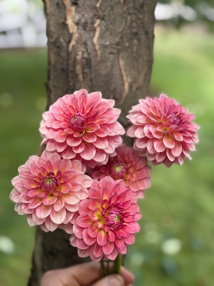 Jabberbox is a striking addition to any garden, reaching up to 5 feet with sturdy, long stems ideal for cutting. Its large 4–5 inch flowers begin as vibrant coral pink and gracefully transition to a peachy coral hue as summer fades to fall. Known for both prolific blooming and reliable tuber production, Jabberbox offers lasting beauty and excellent garden performance season after season.