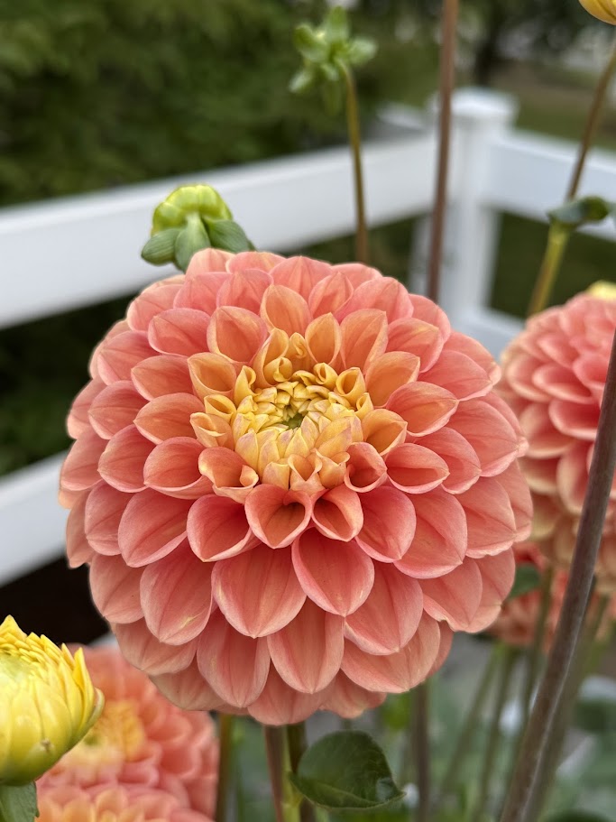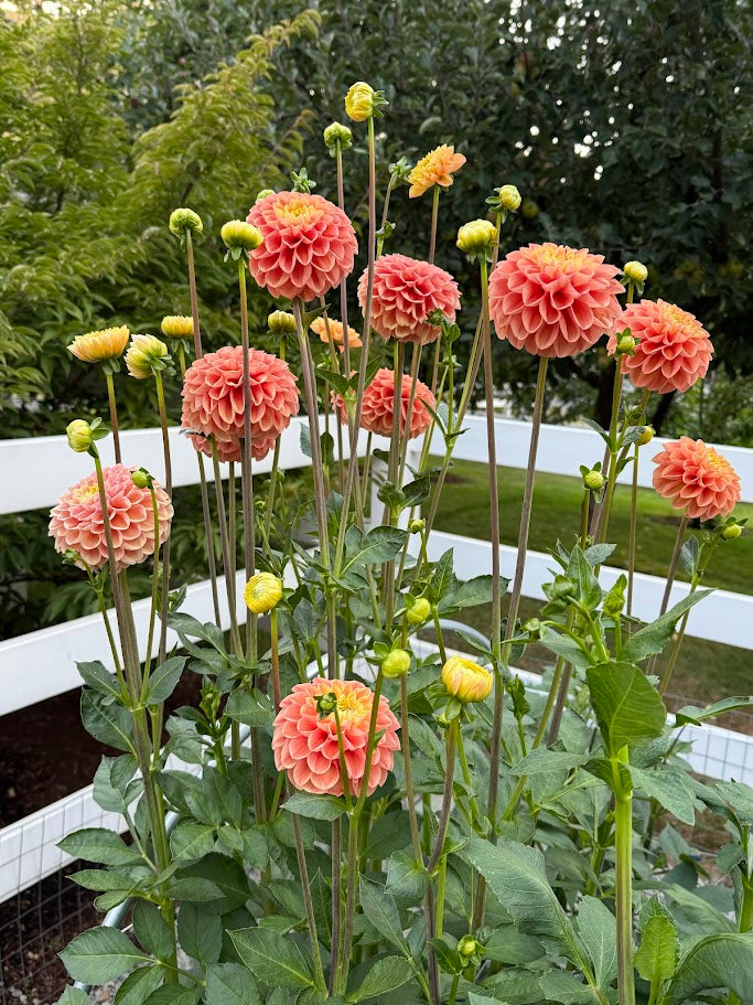 Oh Honey has gorgeous ombre shades of gold, tangerine, and coral pink grace the long, strong stems of this dahlia. This versatile plant offers both stunning 3-4” ball-type blooms and robust tubers, making it a fantastic addition to any garden. The plant reaches a mature height of 4-5 feet.